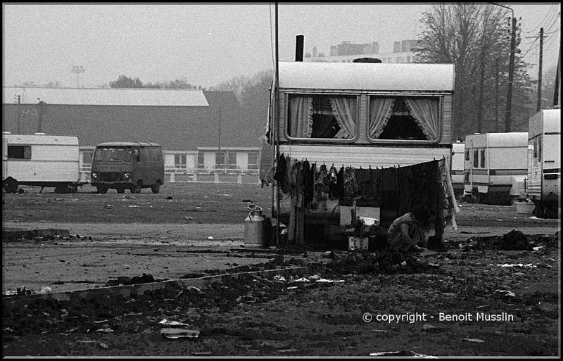 La caravane des gitans sur la place de l'esplanade de Lille.
