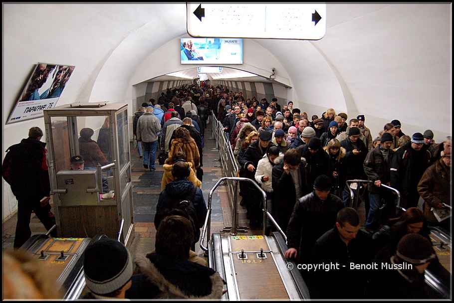 106- Les interminables files d'attente du métro moscovite.